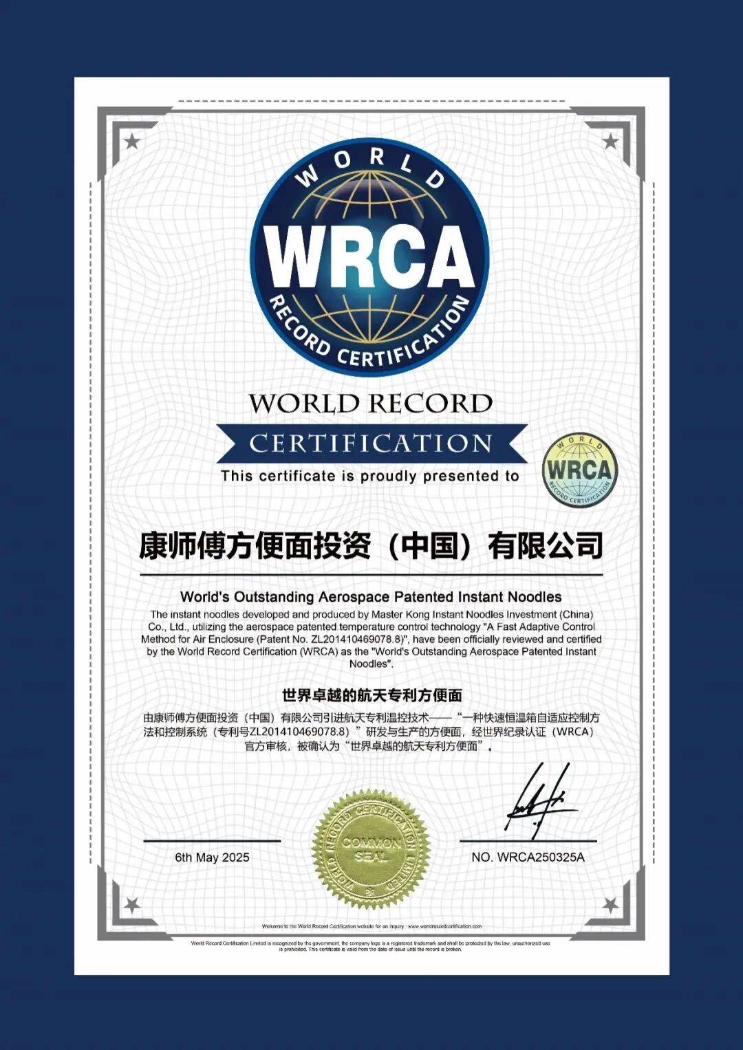 可以说,康师傅在方便面的品质和口感上真正做到了极致,其在技术上的努力,更是获得了WRCA“世界卓越的航天专利方便面”认证。